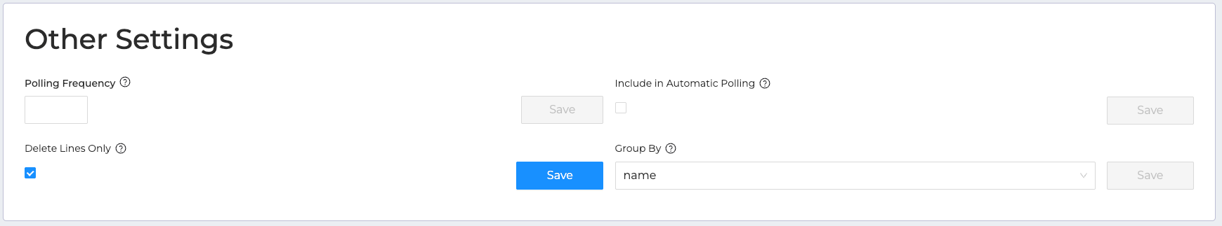 - On the Settings tab for the deletion integration, scroll down to Other Settings and select Delete Lines Only.