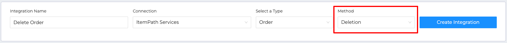 To create the integration and set up the initial configurations, follow the steps outlined in Integration Settings. Be sure to select "Deletion" as the Method.