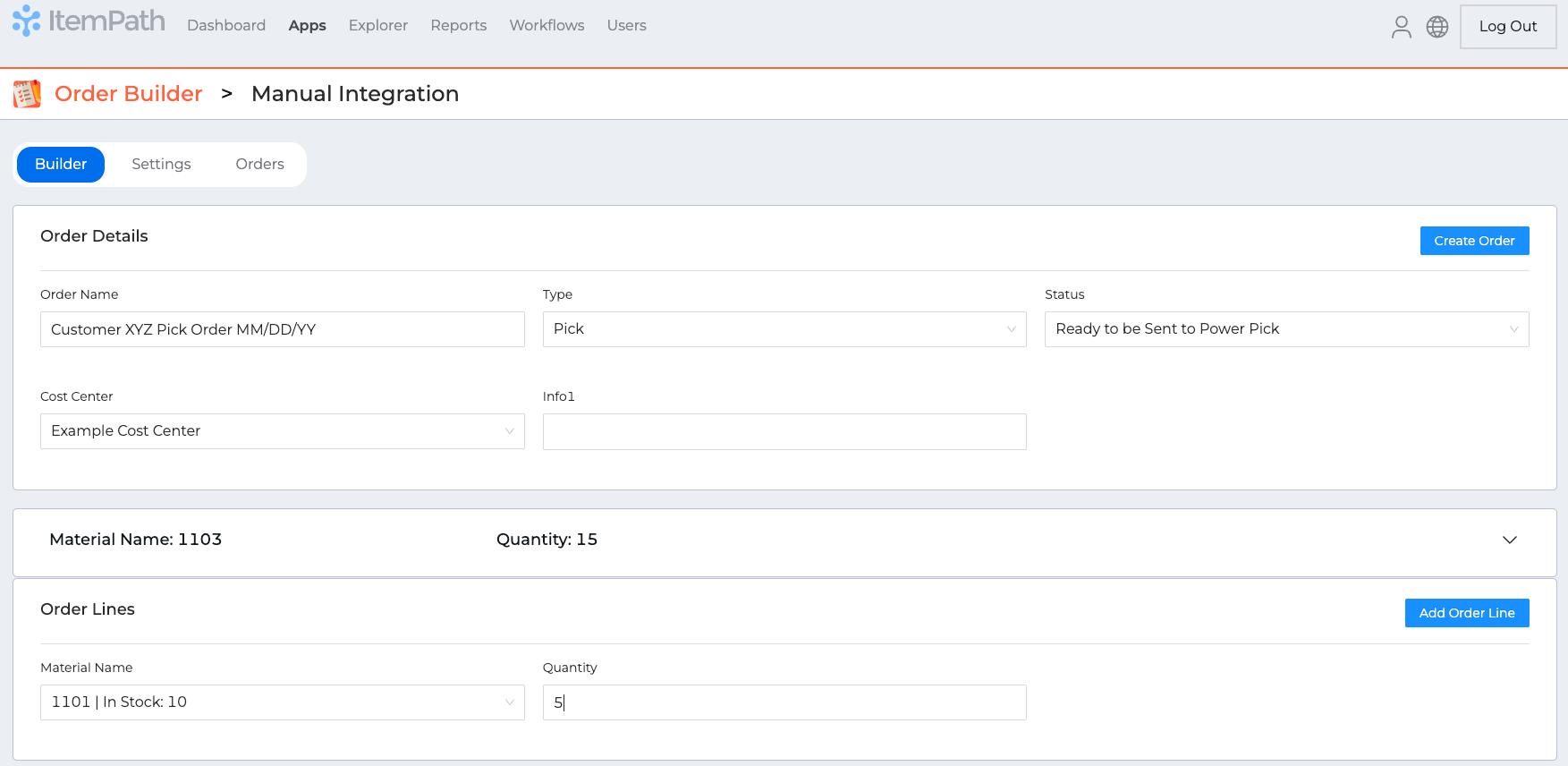 An Order Builder integration acts as a set of rules for creating orders directly within ItemPath.