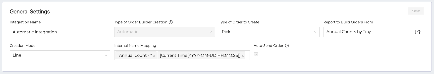 - Type of Order Builder Creation: This is defined when the integration is created and cannot be edited.