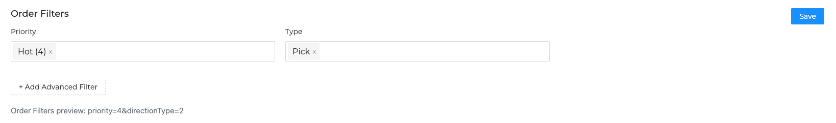 Add Order Filters for priority and order type to narrow down which orders to process using this integration.