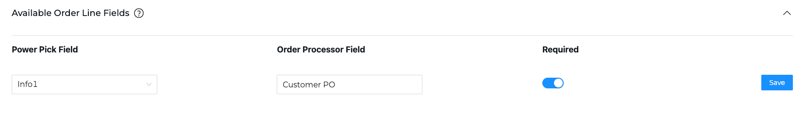 - Required: Toggle this on if you want to ensure fields are populated before an Order Line is confirmed.