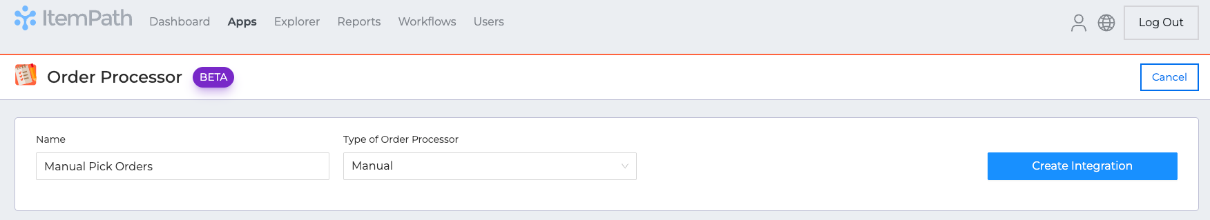 Give your integration a name and select the Type of Order Processor (Manual or Automatic).